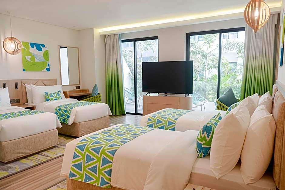 The spacious family room features air conditioning, a seating area, a terrace with garden views as well as a private bathroom boasting a shower. The unit has 4 beds.